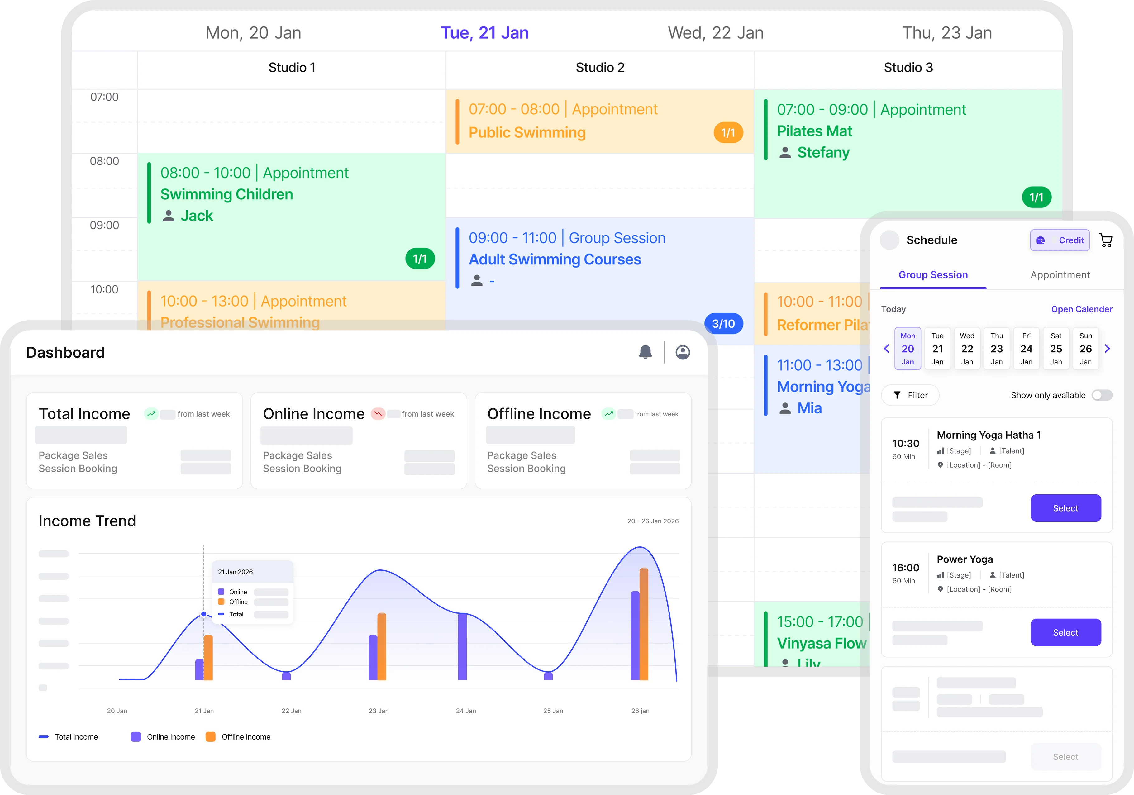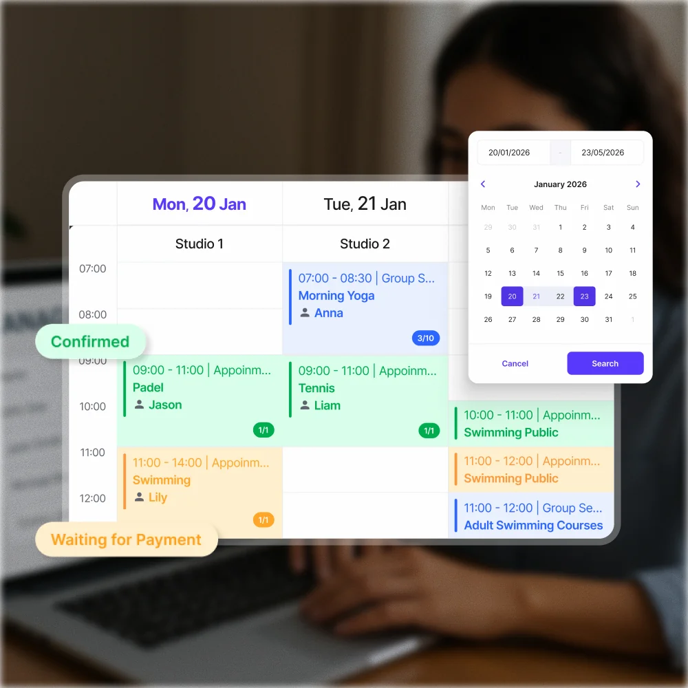 Assign role-based access for admins, coaches, therapists, or receptionists.