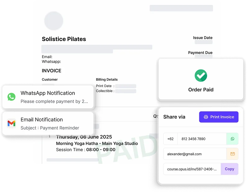Send branded e-receipts or invoices directly via email or WhatsApp.